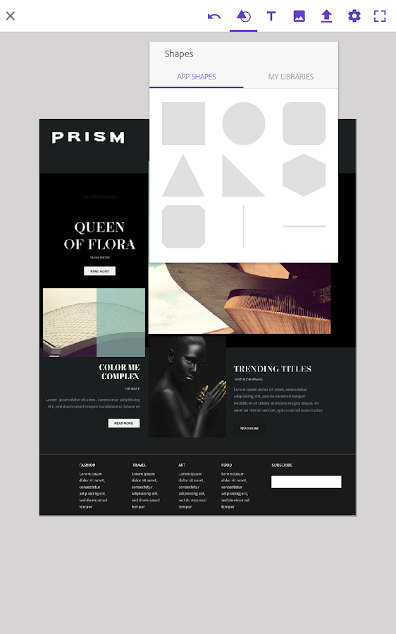 Dapatkan akses mudah di-aplikasi untuk aset Anda - termasuk Adobe Stockimages atau vektor dan tema warna dari Tangkap CC.