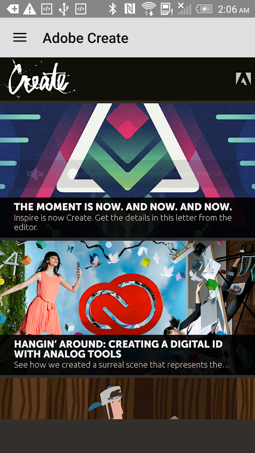 Adobe Buat majalah adalah dengan, untuk, orang andaboutcreative. Kami membawa Anda profil video dan teks profesional kreatif inovatif bekerja di desain grafis, ilustrasi, fotografi, film dan video, jenis, dan lagi.Kami mengeksplorasi proses mereka dan menunjukkan bagaimana mereka membuat menakjubkan work.We juga menjelajah ke sisi liar kreativitas dengan konten seperti kolom WTFIT kami. Sebuah publikasi Adobe.